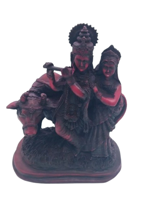PJH Large Polyresin Radha Krishna with Cow Statue for Home Temple, Living Room Decor, and Festive Gifting.